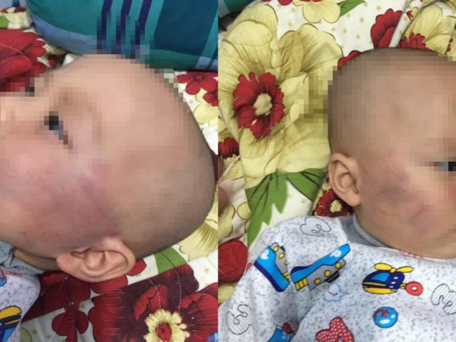 Do cháu bé không nín khóc nên bảo mẫu tát vào miệng khiến mặt bé sưng lên rồi nói với phụ huynh là bé bị té.