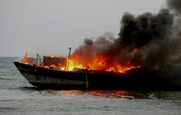 Tàu cá chứa 10 ngàn lít dầu bốc cháy dữ dội trong đêm