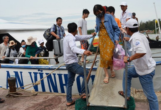 Hơn 2.000 du khách mắc kẹt ở Lý Sơn (Quảng Ngãi) đã được tàu cao tốc đưa vào đất liền trong sáng nay.