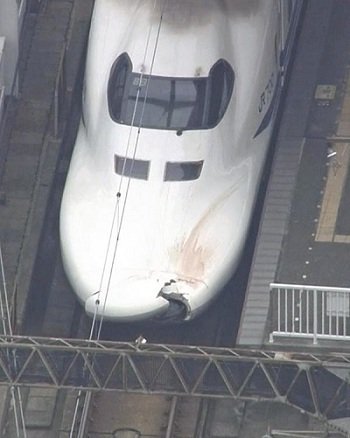 Các bộ phận cơ thể người kẹt trên mũi tàu bị hư hỏng đi từ Hakata tới Tokyo hôm qua.