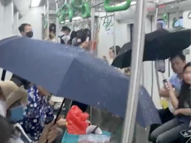 Công ty TNHH MTV Đường sắt Hà Nội báo cáo về sự việc hành khách đi trên tàu metro Cát Linh- Hà Đông phải lấy ô che tránh bị ướt do nước trên khoang tàu chảy xuống.