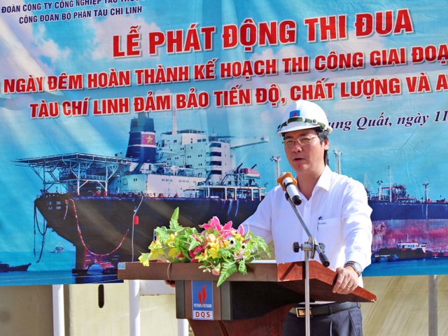 <b>Ngày 11/7/2018 tại Ụ khô số 1 của Công ty Công nghiệp tàu thủy DQS, Công đoàn - Đoàn Thanh niên Công ty đã phối hợp cùng Công đoàn Tàu chí Linh của Vietsovpetro phát động thi đua 60 ngày đêm hoàn thành kế hoạch thi công giai đoạn 1 sửa chữa con tàu này.</b>