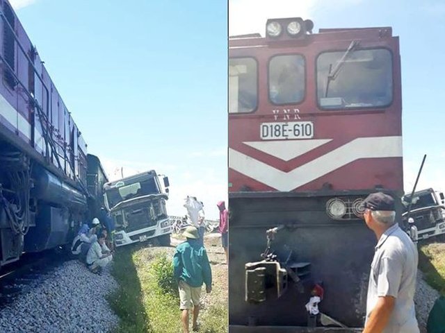 Băng qua đường sắt dân sinh, xe tải bị tàu hoả tông nát đầu