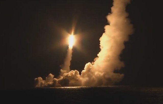 Tàu ngầm hạt nhân chiến lược Vladimir Monomakh của Nga phóng liên tiếp 4 tên lửa đạn đạo xuyên lục địa Bulava, thể hiện khả năng sẵn sàng chiến đấu.