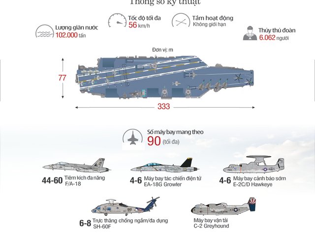 Hệ thống vũ khí trên tàu sân bay Mỹ sắp thăm Việt Nam