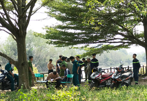 Đứng ở mép sông thả cá chép, người mẹ rơi xuống sông mất tích, bé trai tri hô nhờ người cứu nhưng không kịp.