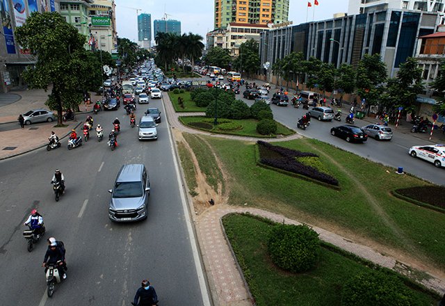 Đường Nguyễn Chí Thanh (Hà Nội), từng đạt giải nhất con đường đẹp Việt Nam với dải phân cách bằng thảm cỏ rộng gần 20m sẽ bị thu hẹp xuống còn 4,4m.