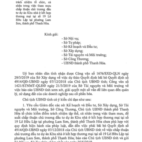 Khu nhà ở, thương mại số 19 Lê Hữu Tập chưa đủ điều kiện bàn giao đất nhưng nhiều Sở, ngành đã tham mưu cho Chủ tịch tỉnh ký.