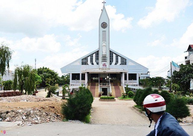Sau 4 tháng, "thần đèn" Nguyễn Văn Cư đã nâng được một phần của nhà thờ Giáo xứ Nữ vương Hoà Bình lên 2m.