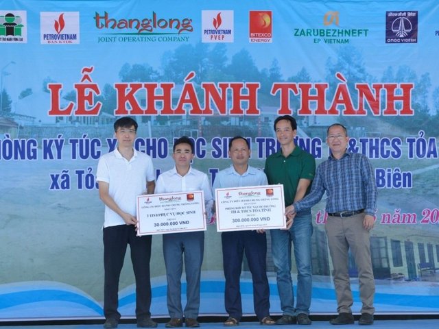 Ngày 6/5/2023 vừa qua, tại Huyện Tuần Giáo, Điện Biên, Công ty điều hành chung Thăng Long (TLJOC) đã phối hợp cùng Quỹ Trò nghèo vùng cao và các nhà đồng tài trợ tham dự lễ khánh thành, bàn giao phòng ký túc xá học sinh cho Trường Tiểu học & THCS Tỏa Tình, xã Tỏa Tình, huyện Tuần Giáo, tỉnh Điện Biên.