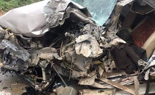 Xe bảy chỗ nát bét sau cú tông xe khách