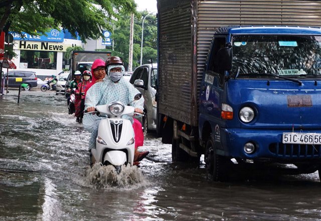 Khoảng 30 phút sau cơn mưa lớn diễn ra vào trưa 3.6 đã làm một số tuyến đường ở P.Thảo Điền (Q2, TP.HCM) ngập lênh láng không khác gì một con sông.
