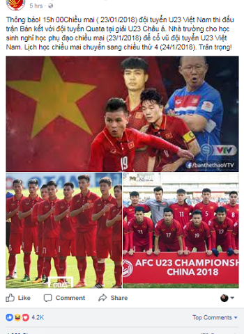Trường cho học sinh nghỉ để cổ vũ đội tuyển U23 Việt Nam