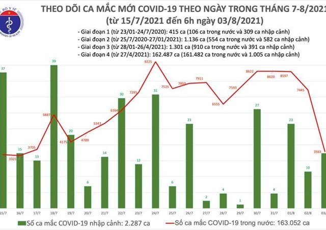 Sáng 3/8, Việt Nam thêm 3.578 ca COVID-19, trong đó 3.563 ca ghi nhận trong nước.