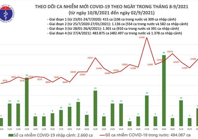 Chiều 2/9, Bộ Y tế công bố thêm 13.197 ca COVID-19, trong đó TP.HCM và Bình Dương là hai địa phương dẫn đầu về số người nhiễm nCoV.