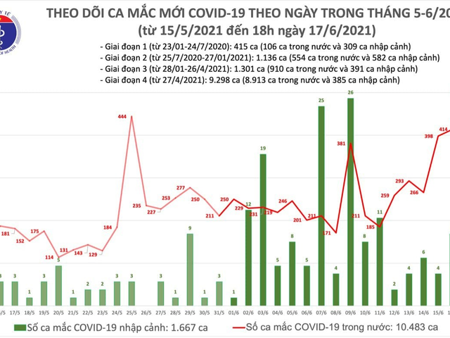 Chiều 17/6, theo thống kê của Bộ Y tế, Việt Nam thêm 136 người mắc COVID-19, trong đó 3 ca được cách ly ngay khi nhập cảnh, 133 trường hợp ghi nhận trong nước.