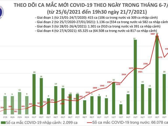 Chiều 21/7, theo thống kê của Bộ Y tế, Việt Nam thêm 2.570 ca COVID-19, trong đó 2.568 ca ghi nhận trong nước.