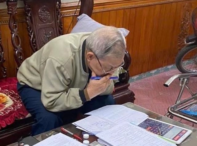 Ông nội 78 tuổi cặm cụi giải đề Toán, Văn, Anh để giúp cháu ôn thi học kỳ