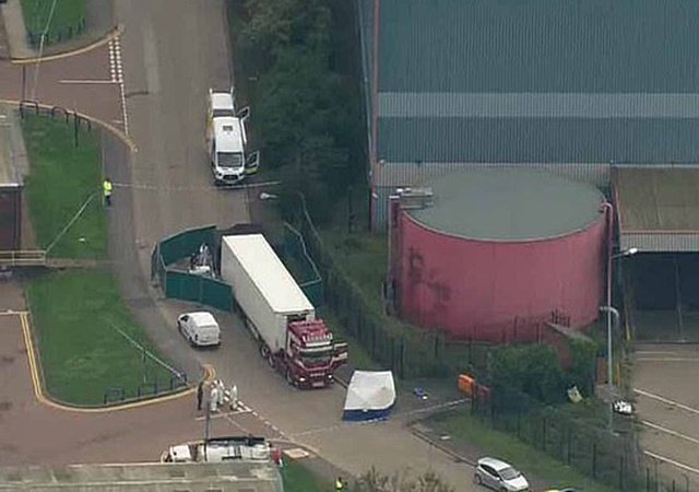 Cảnh sát Anh tìm thấy thi thể 38 người lớn và một thiếu niên trong thùng xe container tại khu công nghiệp phía đông London hôm nay.