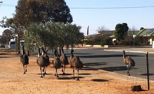 Những con đà điểu emu lùng sục khắp nơi ở thị trấn Broken Hill của Australia để tìm thức ăn và nước uống.