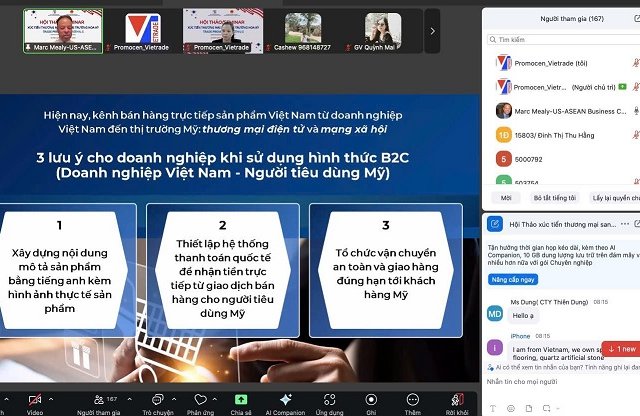Doanh nghiệp Việt Nam có thể tăng bán hàng vào Hoa Kỳ thông qua các sàn thương mại điện tử, tham gia các hội chợ quốc tế, các hoạt động xúc tiến thương mại.