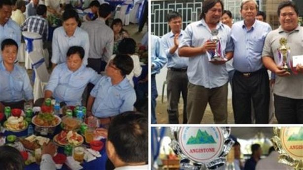 Khi tiệc gần tàn, có 1 bàn 10 người nổi hứng nên tự phát phát động cuộc tranh tài thi nhau uống bia nhanh để tranh chiếc cúp... mượn. Người trong cuộc khẳng định: Thông tin cho rằng Công đoàn cơ sở của Cty TNHH MTV Khai thác - chế biến đá An Giang (Angistone) tổ chức “cuộc thi uống rượu giỏi” là không đúng”.