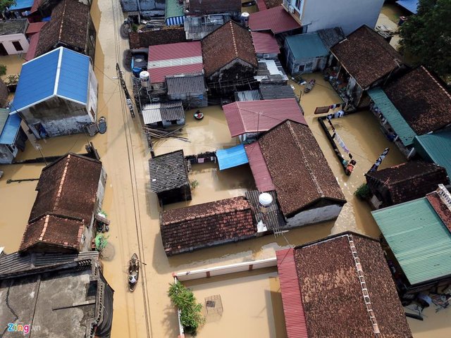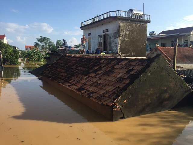 Nước lũ đổ về khiến nhiều ngôi nhà bị nhấn chìm, người dân phải sống vắt vẻo trên những mái nhà, thiếu đồ ăn, nước uống...