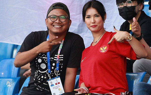 Cựu sao phim người lớn Nhật Bản Maria Ozawa tới sân cổ vũ cho U22 Indonesia trong trận đấu với Thái Lan ở vòng bảng SEA Games 30.