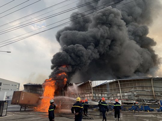 Vụ cháy kho hàng rộng gần 20.000 m2 làm hàng hóa của 4 doanh nghiệp bị thiêu rụi hoàn toàn.