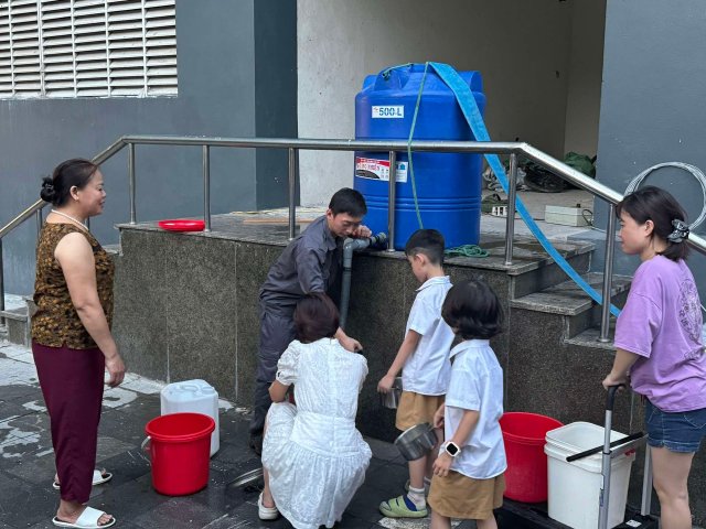 Từ ngày 14-10, một số khách hàng thuộc khu vực phía Tây Nam thành phố Hà Nội phản ánh hiện tượng bị thiếu nước sinh hoạt, phải xếp hàng đi lấy nước được bơm lên từ bể ngầm của khu chung cư.