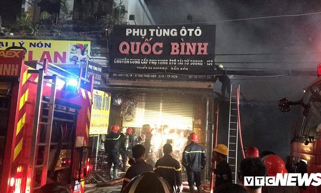 Cửa hàng phụ tùng xe hơi cháy ngùn ngụt giữa đêm ở TP.HCM
