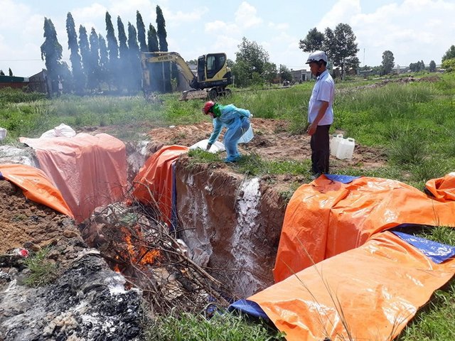 Ngày 18/5, Chi cục Chăn nuôi và thú y Đồng Nai tiêu hủy toàn bộ thịt heo đông lạnh tại công ty thực phẩm ở huyện Trảng Bom.