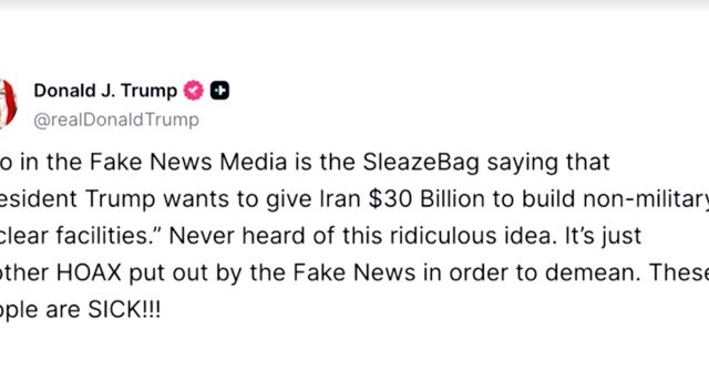 Tổng thống Mỹ Donald Trump ngày 28/6 bác bỏ các báo cáo cho rằng Washington đang cân nhắc một thỏa thuận hạt nhân dân sự trị giá 30 tỷ USD cho Iran.