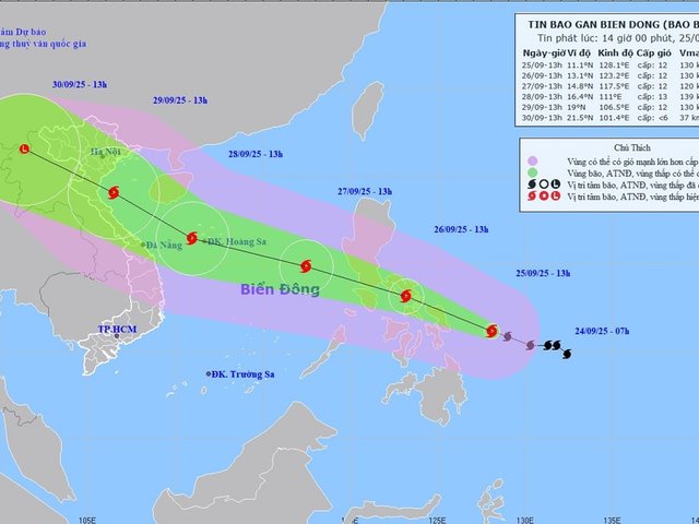 Kể từ khi đi vào Biển Đông đến nay, bão số 9 Ragasa giảm 3 cấp; dự báo chiều 25/9, bão trên đất liền Quảng Ninh với gió giật cấp 11.