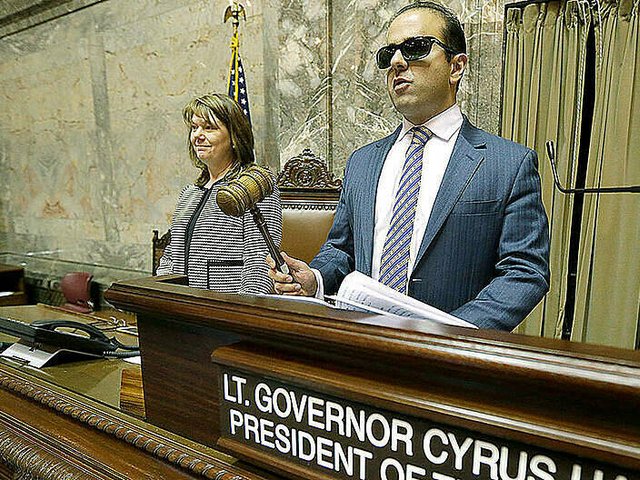 Cyrus Habib bị mù hoàn toàn từ 8 tuổi, nhưng nhờ mẹ anh thành phó thống đốc bang Washington ở tuổi 35.