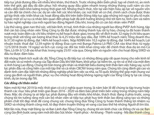 Thư chúc mừng năm mới Kỷ Hợi 2019 của Ban Lãnh đạo PVEP gửi toàn thể CBNV