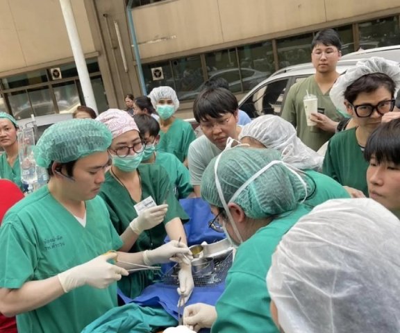 Hình ảnh các bác sĩ Bệnh viện Cảnh sát Thái Lan thực hiện ca phẫu thuật ngoài trời để cứu một bệnh nhân sau khi phải sơ tán khẩn cấp do động đất đang gây bão mạng.