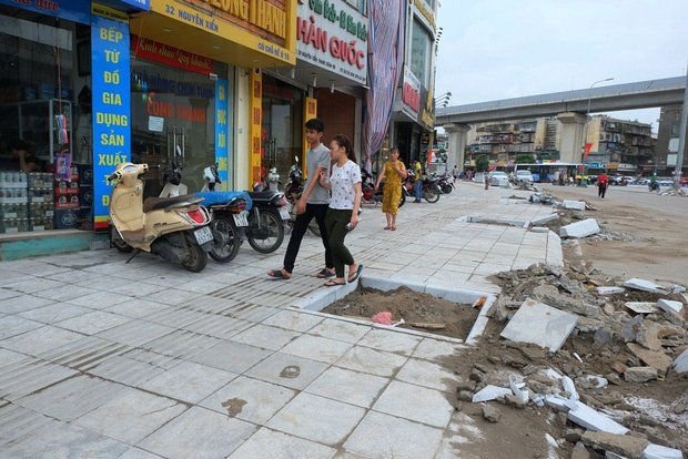 Cần khẳng định thêm rằng, vỉa hè Hà Nội đã từng bị “trọng thương” trong rất nhiều năm qua. Chưa hết đào bới xới móc, thì lại bị tái chiếm làm nơi bán hàng, chỗ để xe và hàng trăm thứ dịch vụ khác ăn theo vỉa hè. Đáng tiếc và đang nói, vỉa hè Hà Nội chưa qua lần bị thương này thì lại ập đến lần khác, có khi còn nghiêm trọng hơn. Thành phố đã từng bỏ ra hàng nghìn tỷ đồng để nâng cấp vỉa hè (lát đá xanh) trên hầu như tất cả các tuyến phố chính, với cam kết sẽ “tồn tại” ổn định trong khoảng 50 - 70 năm. Nhưng mới chỉ sau vài năm sử dụng, vỉa hè Thủ đô lại đang bong tróc, nham nhở đến thảm thương.