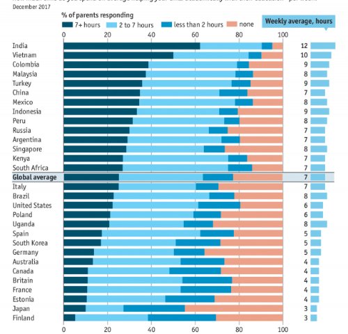 Phụ huynh Phần Lan, Nhật Bản chỉ dành 3 tiếng mỗi tuần để giúp con học bài, trong khi phụ huynh Việt Nam dành 10 tiếng.