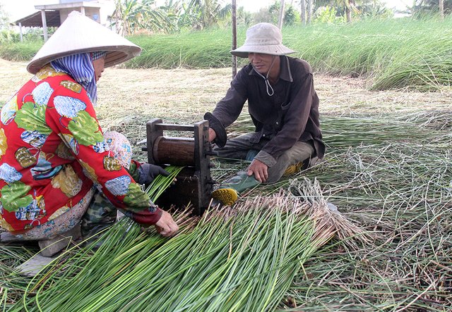 Mấy năm qua, người dân xã Đức Mỹ ở Trà Vinh mạnh dạn chuyển đổi hàng nghìn ha đất trồng lúa sang trồng cỏ lác làm thủ công mỹ nghệ.