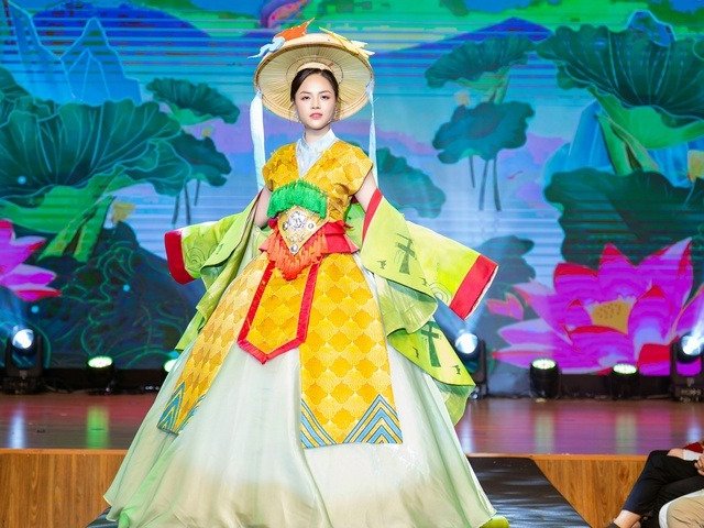 Thu Quỳnh tái xuất sàn diễn với tạo hình độc đáo , khoác lên mình trang phục lấy cảm hứng từ văn hóa truyền thống Việt Nam.