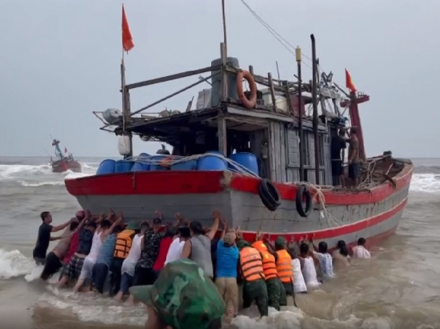 Giông lốc và sóng lớn đã đánh chìm tàu cá TTH-910.75; riêng tàu TTH-923.49 TS bị mắc cạn, cách bờ biển hơn 10m. Nhận tin báo, UBND xã Phú Hải và UBND xã Phú Thuận (huyện Phú Vang, tỉnh Thừa Thiên-Huế) huy động ngư dân địa phương đến hiện trường cùng phối hợp với lực lượng BĐBP cứu hộ các tàu cá.