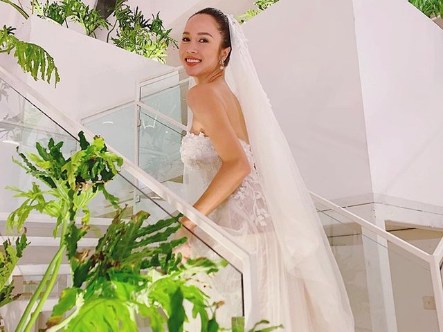 Trong khi Ngọc Anh mặc váy cô dâu thì Cường Seven diện trang phục chú rể lịch lãm. Cả hai xuất hiện tại cùng một không gian được cho là nơi diễn ra lễ kết hôn bí mật.