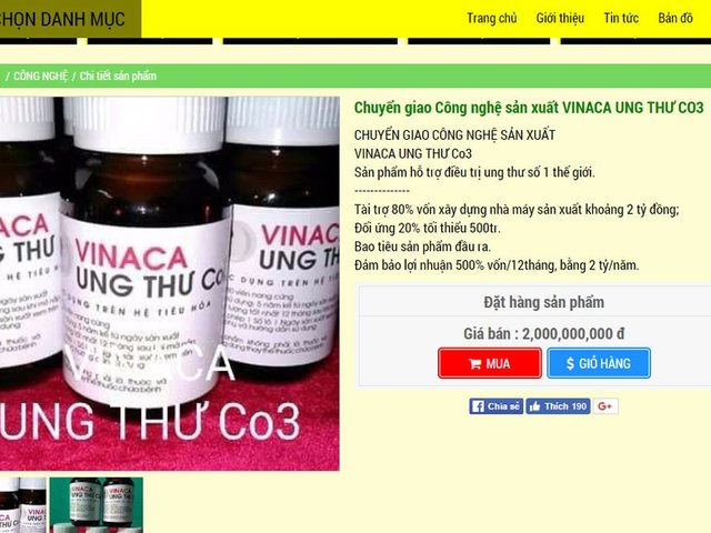 2 tỉ đồng một gói chuyển giao công nghệ sản xuất thuốc điều trị ung thư CO3, hỗ trợ tiền tỉ để giúp người nghèo khởi nghiệp, cam kết làm giàu chính đáng... là những gì mà công ty Vinaca- đơn vị vừa bị cơ quan chức năng phát hiện sản xuất thực phẩm chức năng từ tro than đã quảng cáo.