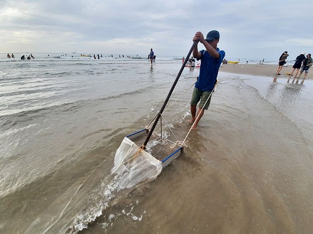 Đời phu nghêu gắn liền với những chuyến đi tìm bờ cát và con sóng. Có ngày đi một buổi phải trở về tay trắng vì không có bãi cào, có ngày dầm mình ướt đẫm suốt 5 tiếng chỉ được vài cân vỏ nghêu. Nhưng, nếu một ngày không ôm cào ra biển thì ngày đó cái đói sẽ chực chờ, nỗi lo thêm nặng gánh...