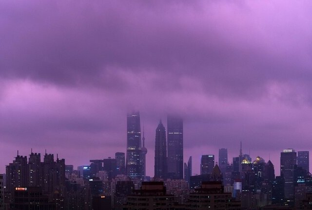 Bầu trời Thượng Hải đổi sang sắc tím trước khi bão Bebinca đổ bộ