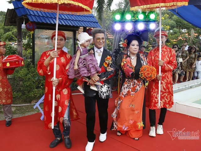 Thúy Nga diện áo dài 5m trong đám cưới lần thứ 10 với Thanh Bạch