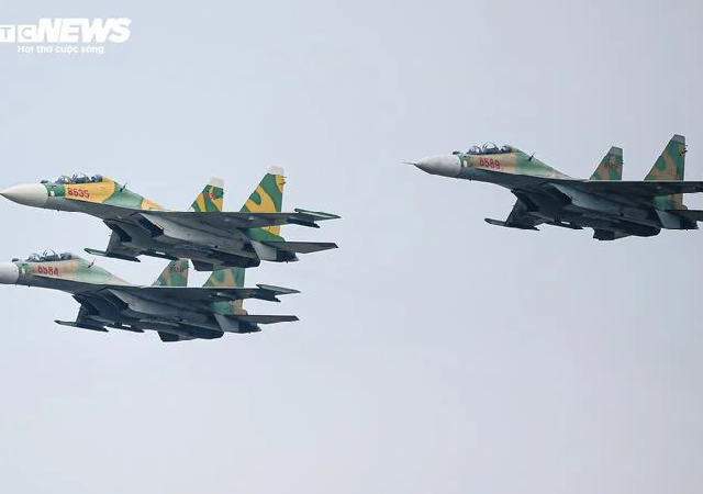 Tiêm kích Su-30MK2, trực thăng bay khảo sát, chuẩn bị biểu diễn dịp đại lễ 2/9