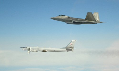 Quân đội Mỹ cho biết phi cơ Nga hoạt động trên vùng trời quốc tế, không xâm phạm không phận và luôn được tiêm kích F-22 theo dõi.