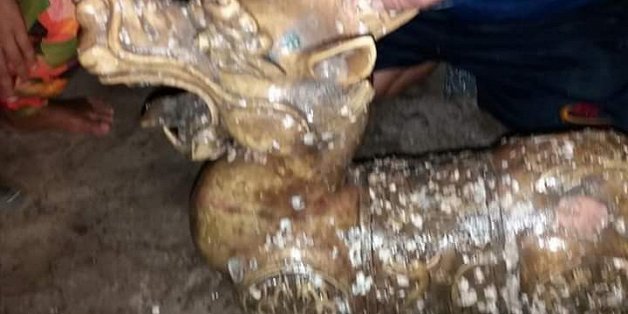 Tìm thấy bức tượng 2 đầu, trong bụng có nhiều tiền cổ ở Cà Mau